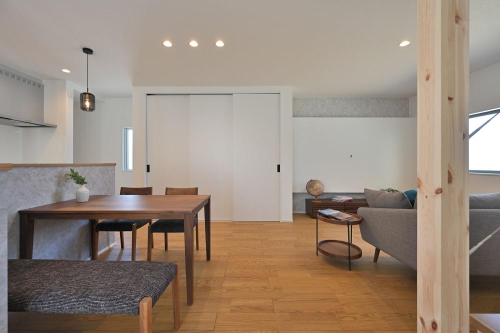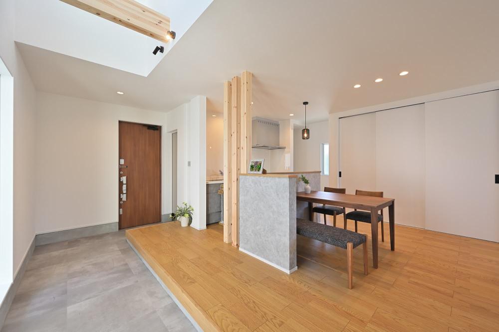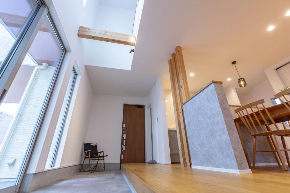 休みの日は庭にテントを立ててお家キャンプを楽しんだり、友達と一緒にBBQをしたり…土間収納とつながる吹抜けも相まって、大きく空間を使いながら家でも遊びを最大限楽しめるレイアウト。