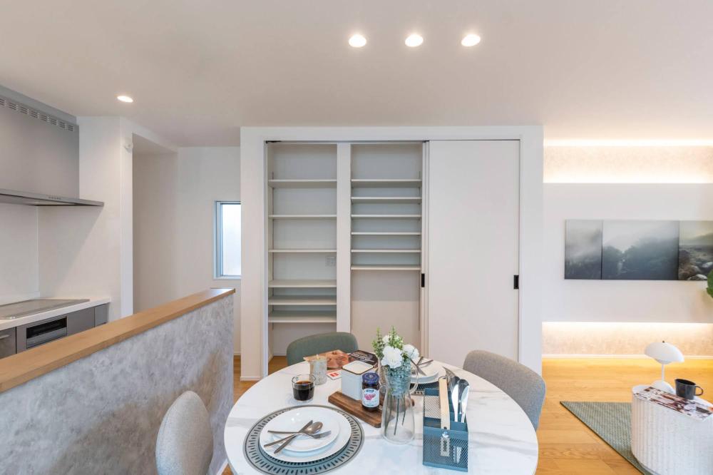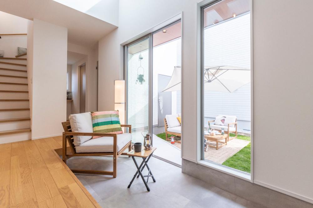 リビング横に広がる広々とした土間スペースは、キャンプギアのメンテナンスや自転車のディスプレイなど、趣味を存分に楽しめる「インナーテラス」のような存在です。