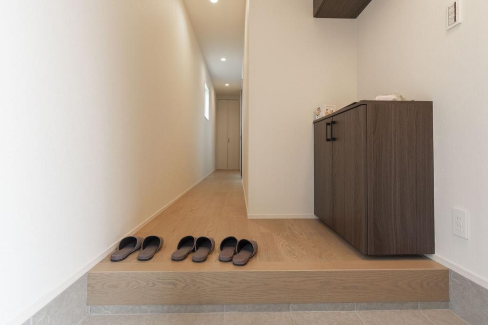 和モダンの中にスタイリッシュな「洋」も入れた、現代的でバランスの取れたデザイン。狭小地を感じさせない縦の直線が紡ぐ、美しい暮らし