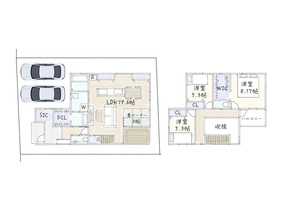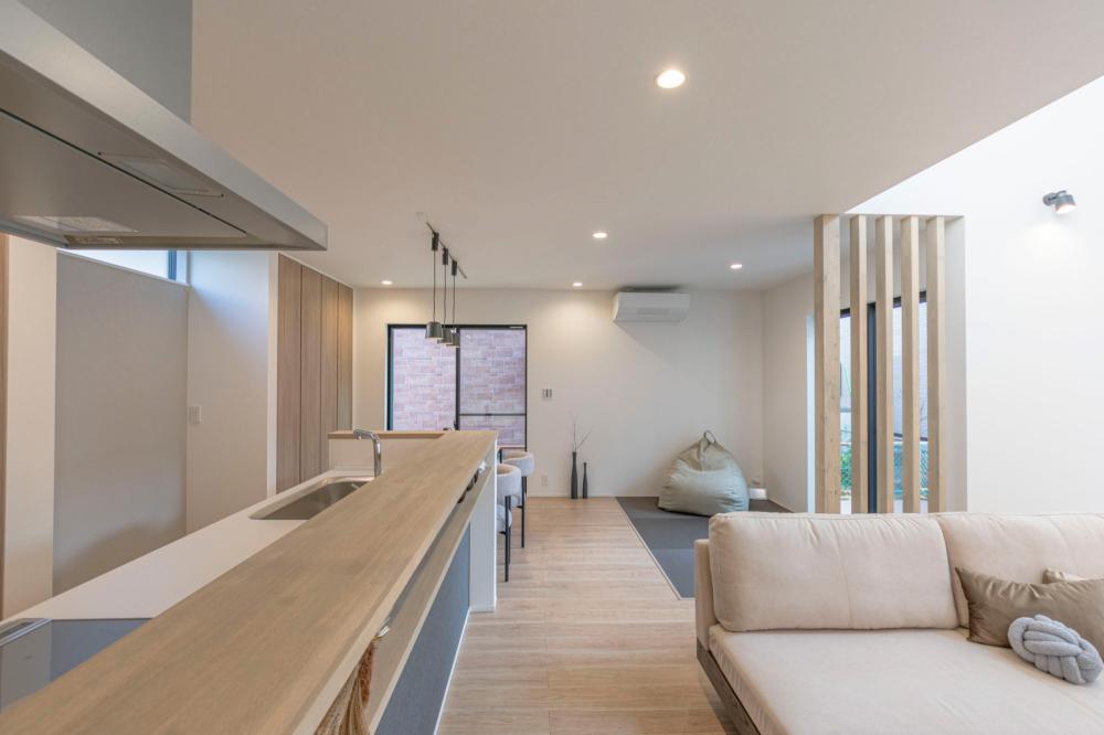 1級建築士による間取りプラン。LDKは畳スペースを含め22.6帖の大空間に仕上がりました。