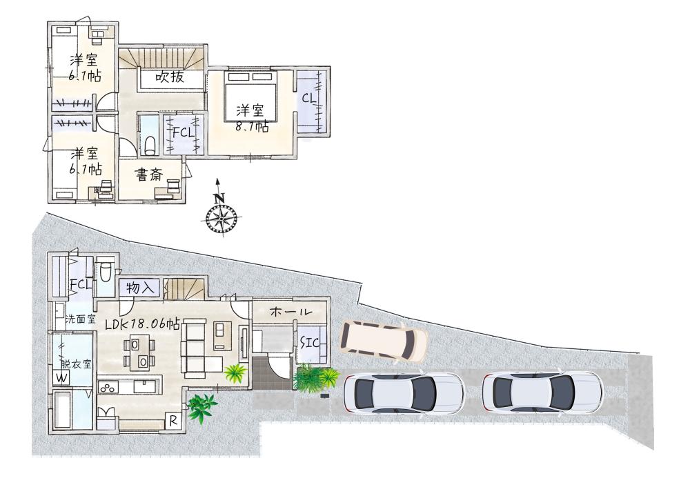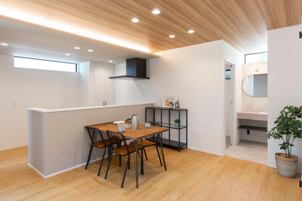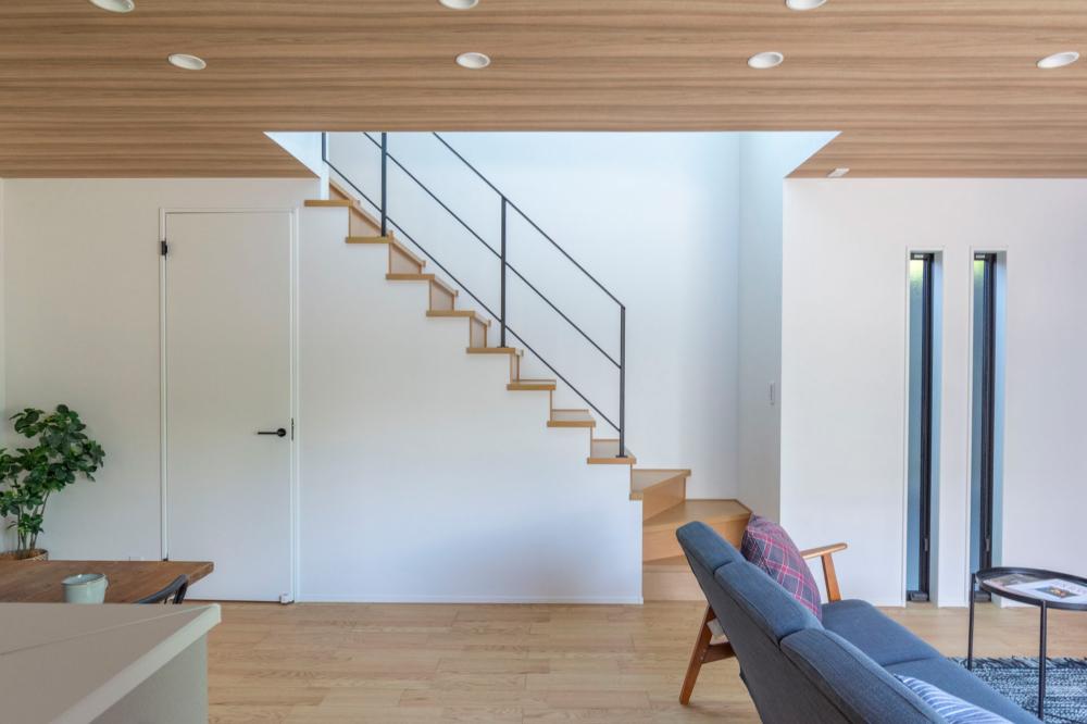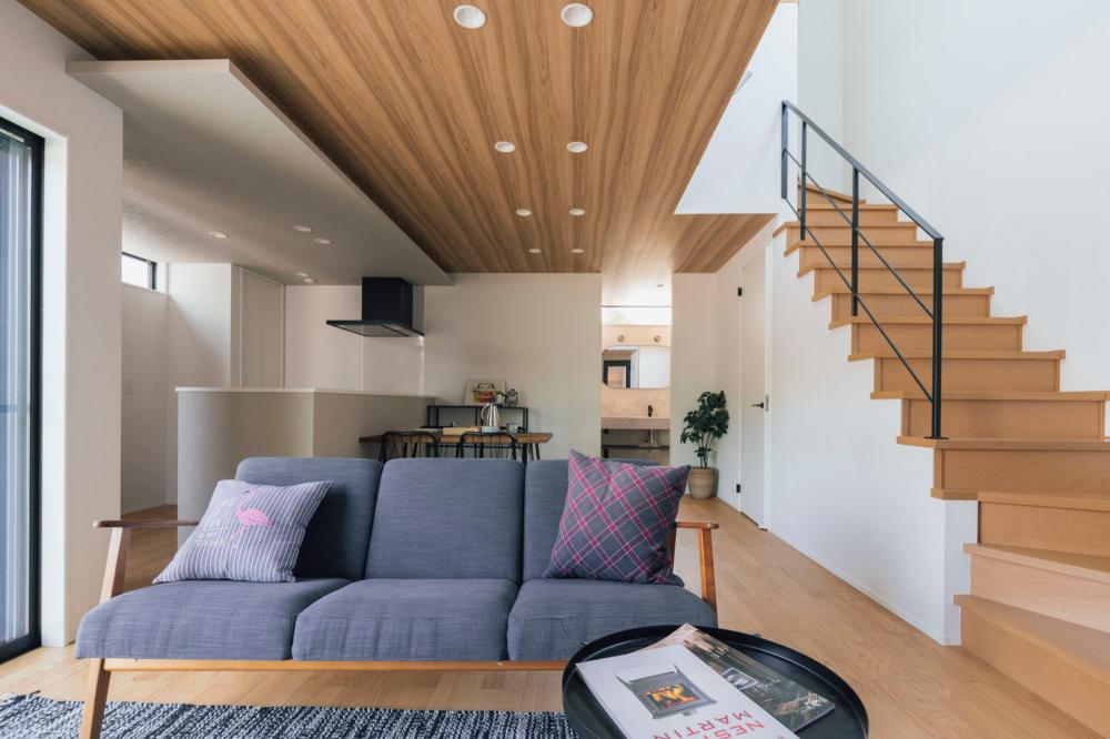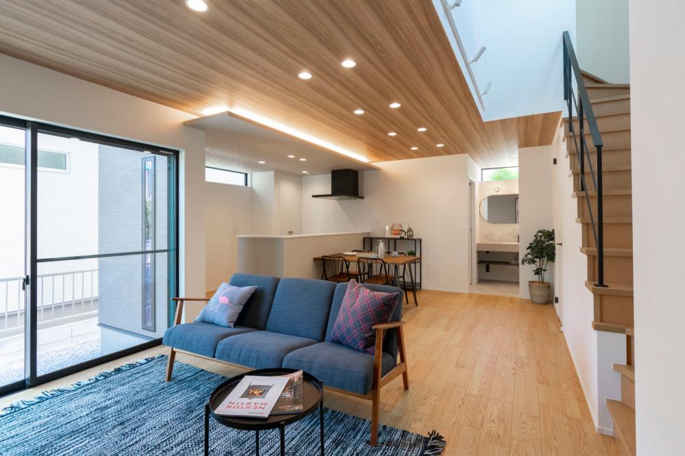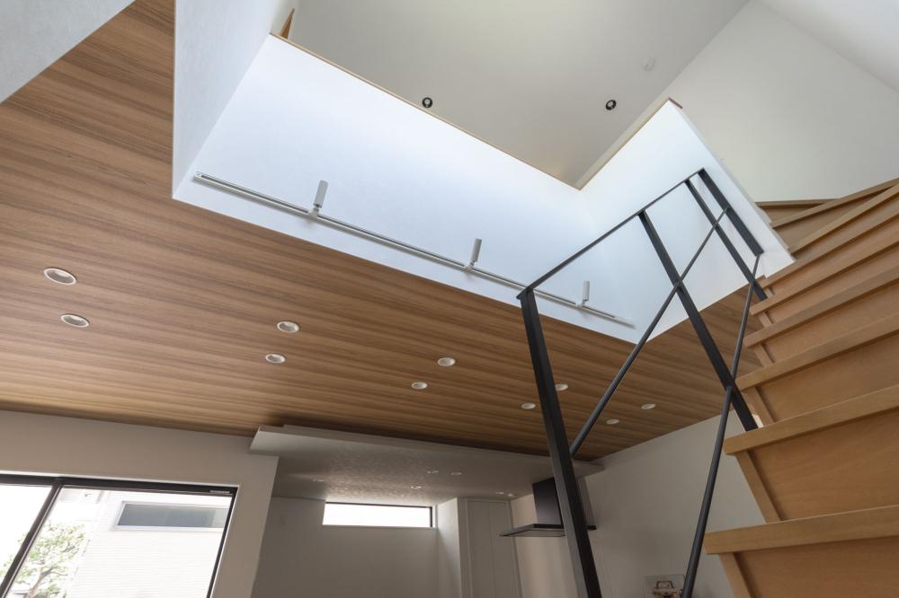 視界を広げてくれるLDK天井も木目クロスと階段の吹き抜けは圧巻です。