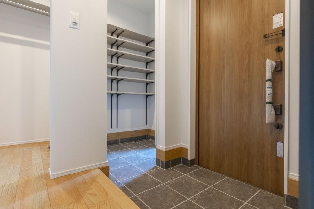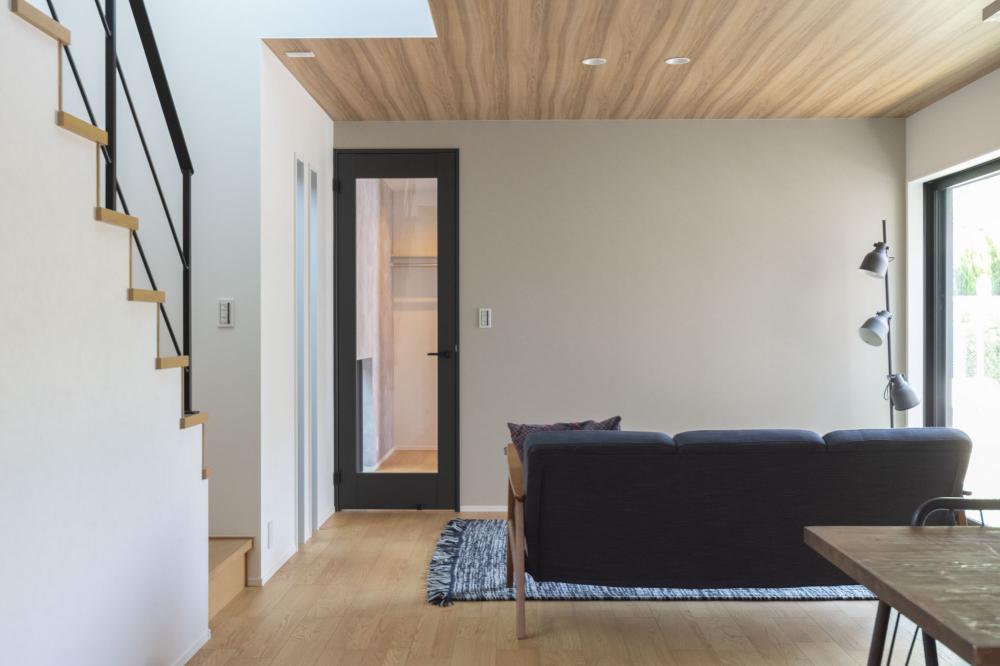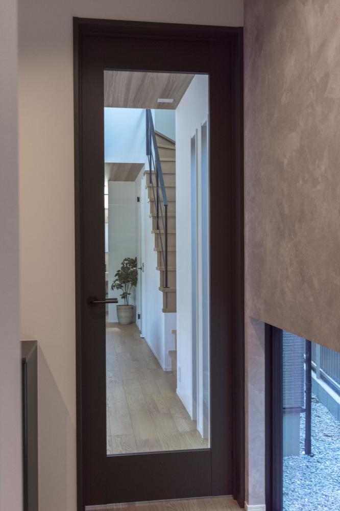 ダークトーンでカッコよくまとめた色に木目を入れ、調和した心地よい空間を実現いたしました。