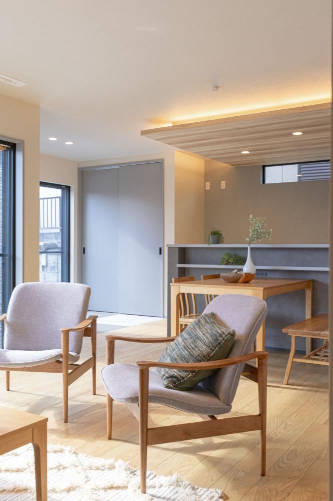 折り下げ天井が目を引くLDK、グッドデザイン賞受賞のリビングハイドア、食洗器付きのキッチン、間口の広い造作洗面台など見どころ満載の高性能モデルハウスをぜひ一度ご覧くださいませ
