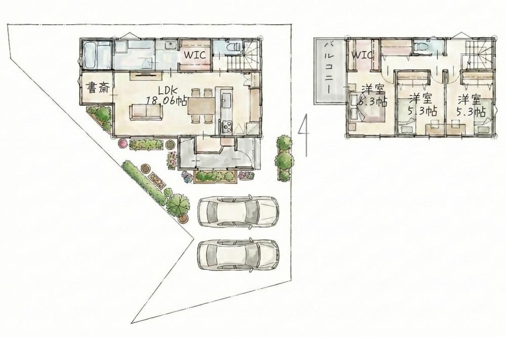 LDK横の書斎や大きな収納など「暮らしやすさ」を考え取り入れた間取り設計。