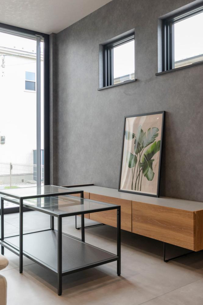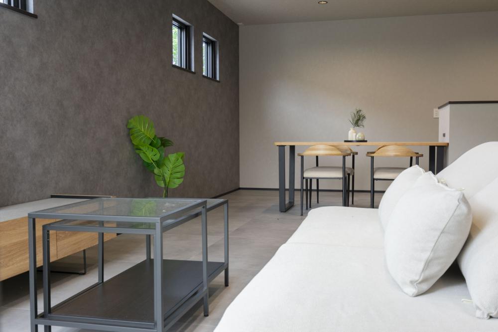 ナチュラルな外観のイメージからは想像がつかないような高級感のあるモダンでシックな内装。