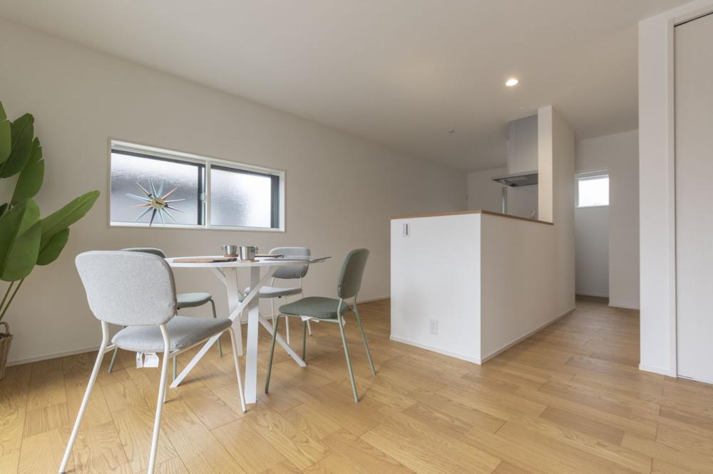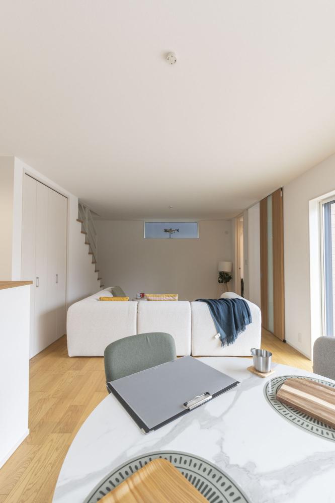 ご友人を招いてのホームパーティも楽しめる広さを確保しつつ、水回りはリビングからの視線をさりげなく遮るよう緻密に計算して配置しました 。