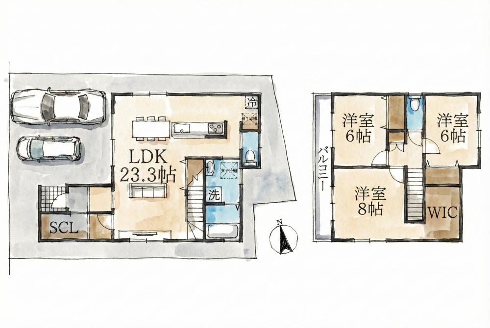 無駄な廊下を排したシームレスな設計により、23帖というゆとりある大空間LDKを実現しました 。
