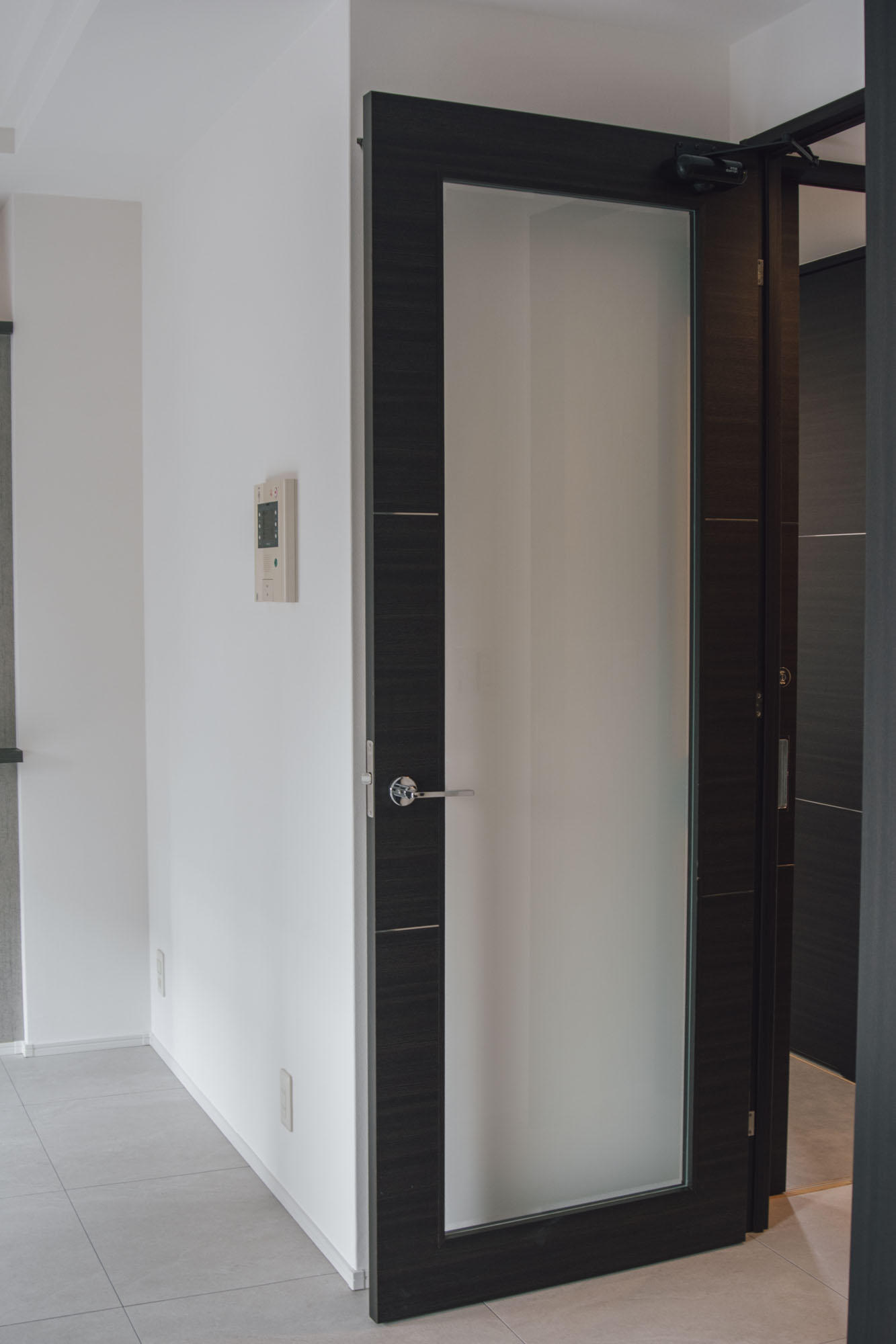 飾りすぎないデザインの部屋に溶けこむガラスのリビングドア