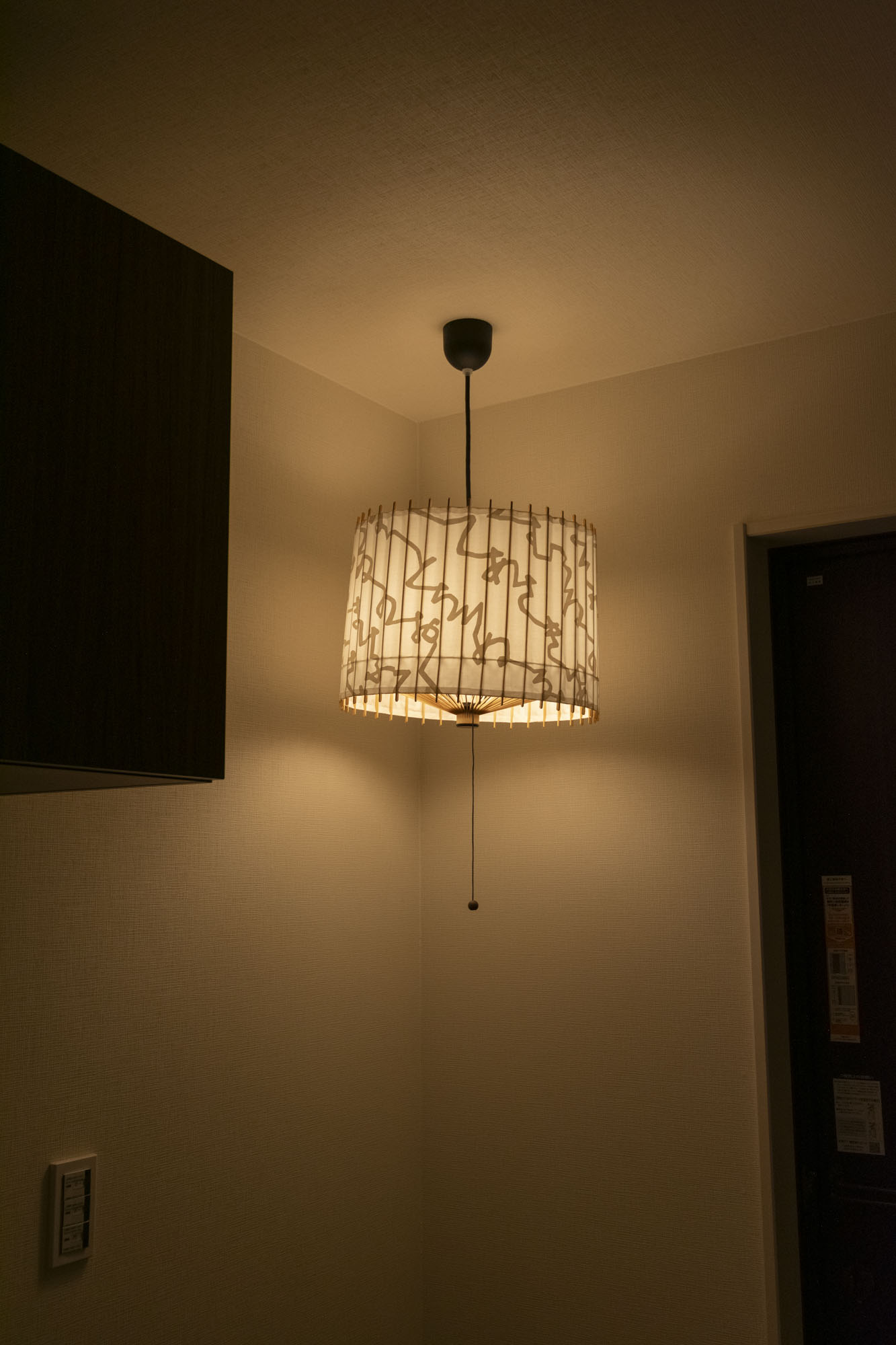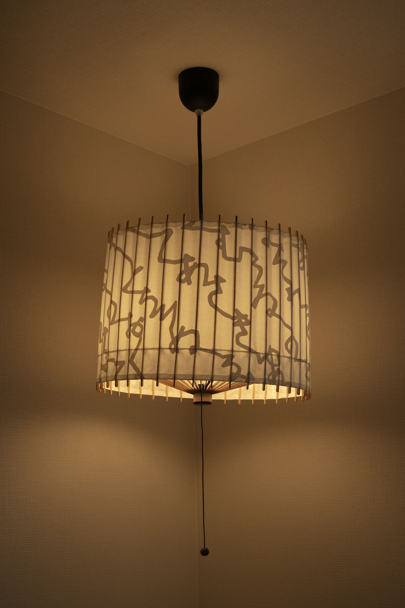 玄関ドアを開けるとすぐ目に入る、大きなペンダント照明 (京都アンプリチュード)京和傘の技術を応用したペンダント照明 Fumiというひらがながかかれたデザインでおもしろさをプラスしました。 __(以下、京都アンプリチュードHPより引用) 「古都里-KOTORI- STペンダント×SOU・SOU」は、「古都里-KOTORI- STペンダント」の形状をそのままに、SOU・SOUのデザインテキスタイルを用いてシェードを制作した商品です。