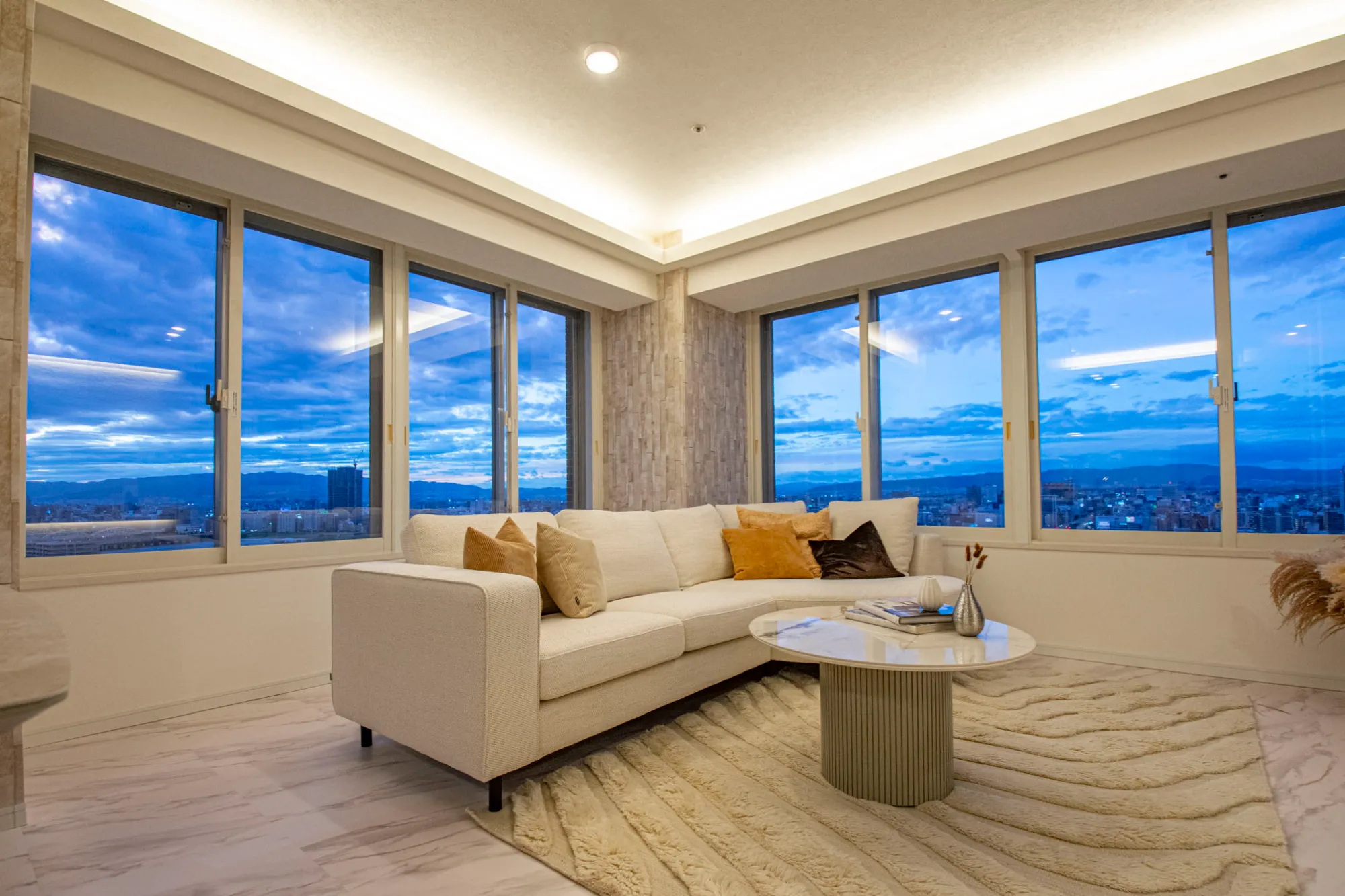 高層階から望む息をのむ景色と洗練されたモダンインテリアが融合した、ラグジュアリーな空間。