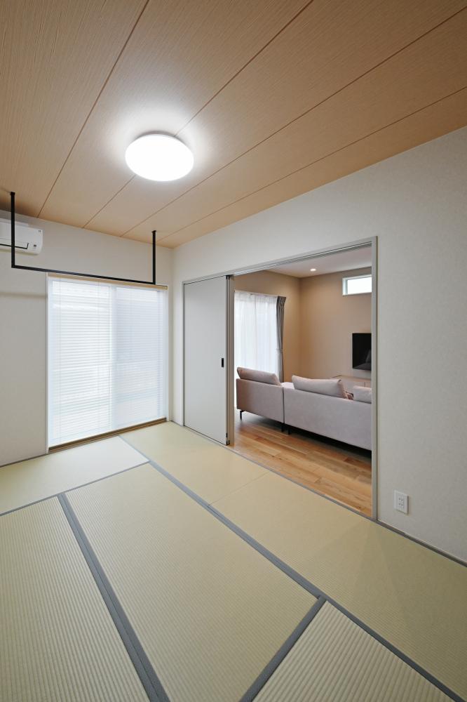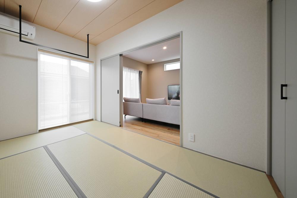 和室にはハンガーパイプがついております。大きな窓のそばで室内洗濯が可能