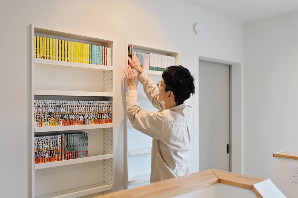 本をたくさん収納できる本棚など適材適所に収納スペースを設けました。使った物を付けるスペースが確保されていることで、部屋が散らからずいつも整った環境で生活が出来ます