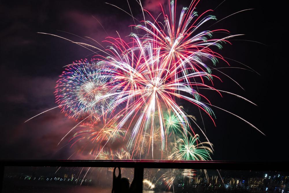 琵琶湖を一望できるバルコニー。視界を遮る建物もないため夏の花火を真正面から楽しめます