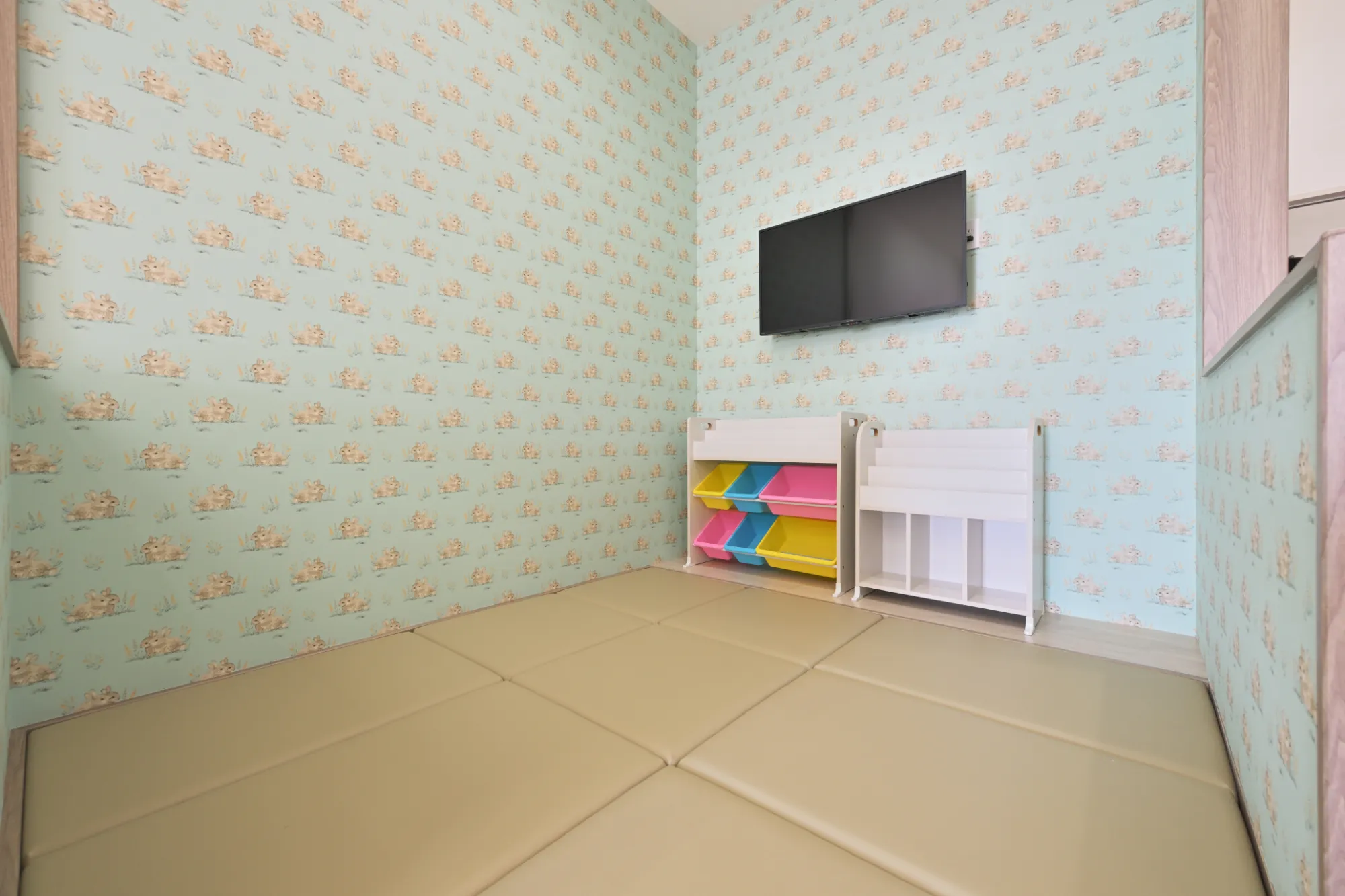 安心感のあるキッズスペースは、保護者の目が届く位置に