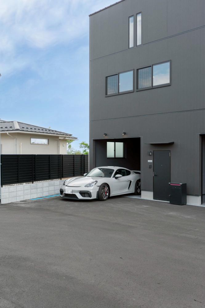 いつでも車を愛でられる贅沢空間。シャッター付きのビルトインガレージに停めた愛車を