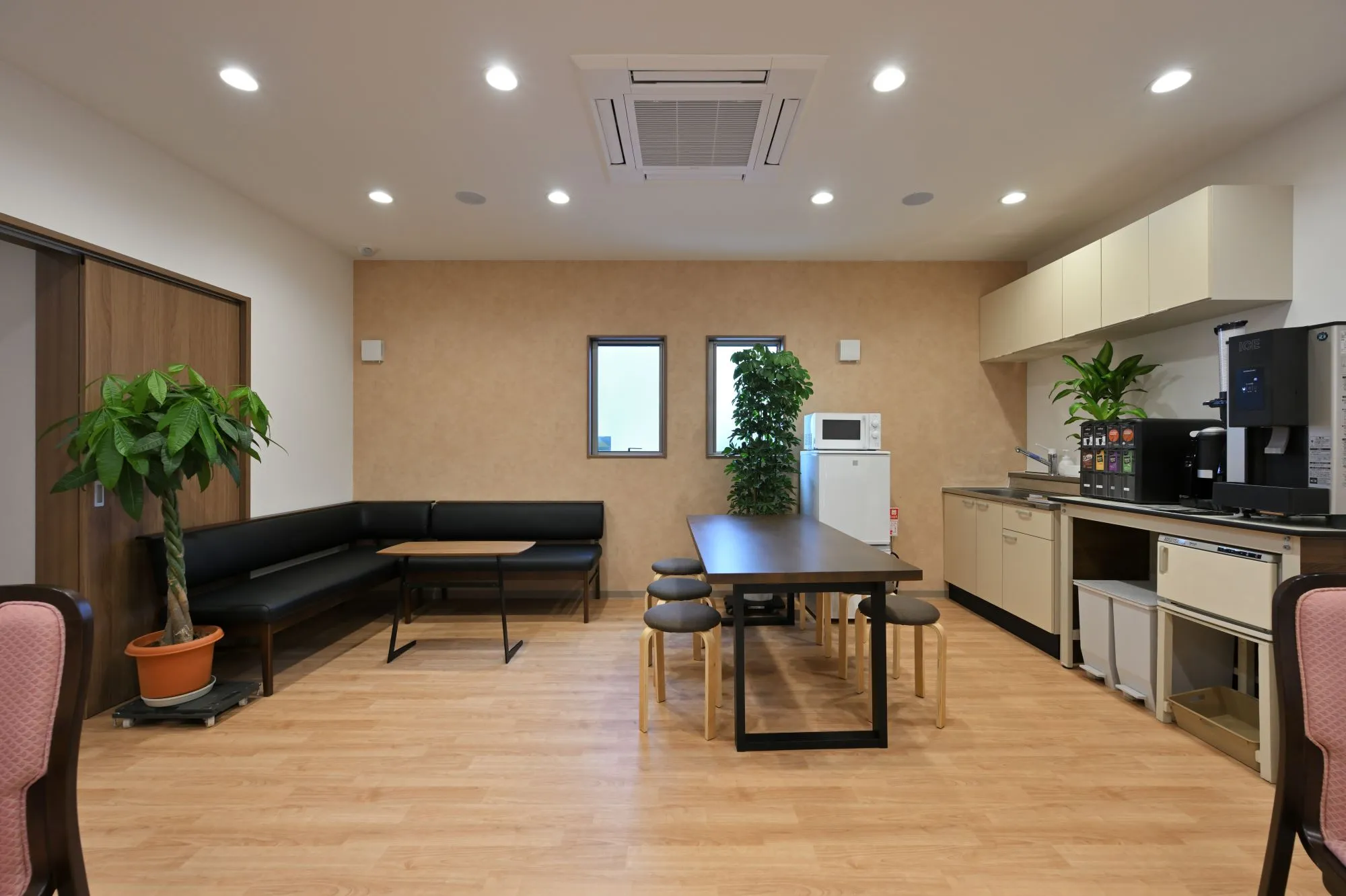 ゆったりくつろげる待合リビング。式の進行中でも、お子様からご高齢の方まで家族全員が無理なく過ごせます。