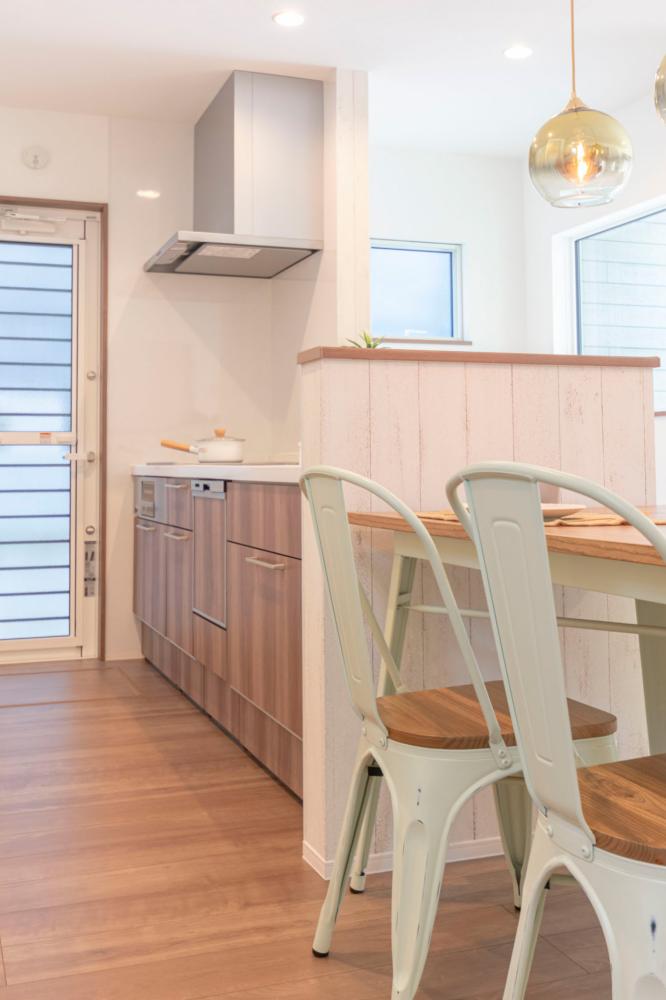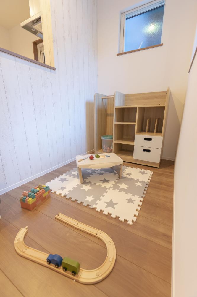 家事動線を考えた間取り設計。キッチンから見える位置に安心遊びスペースもございます