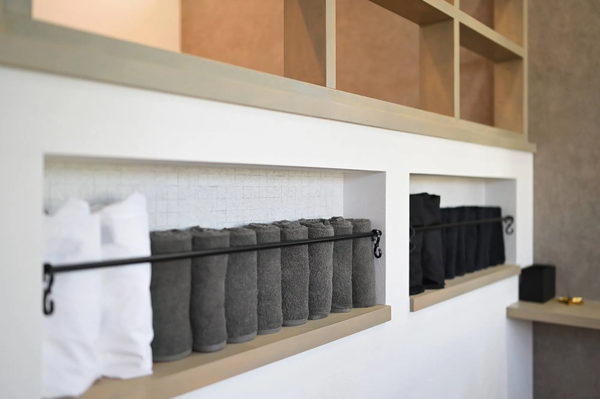 黒のアイアンでも重い印象はなく、繊細で上品な印象のタオルラック