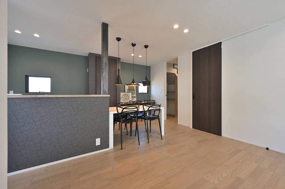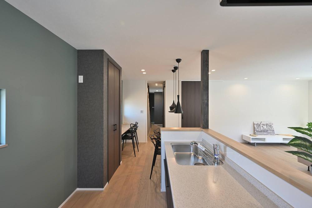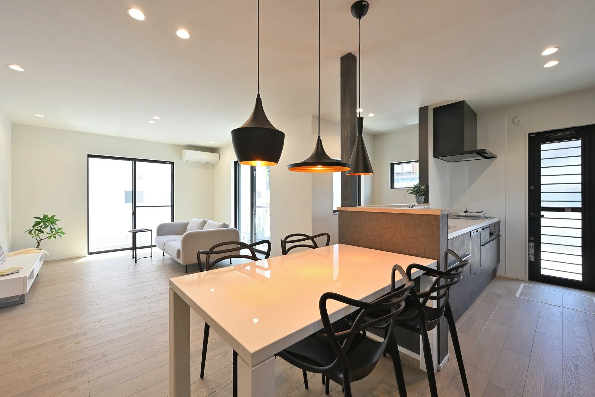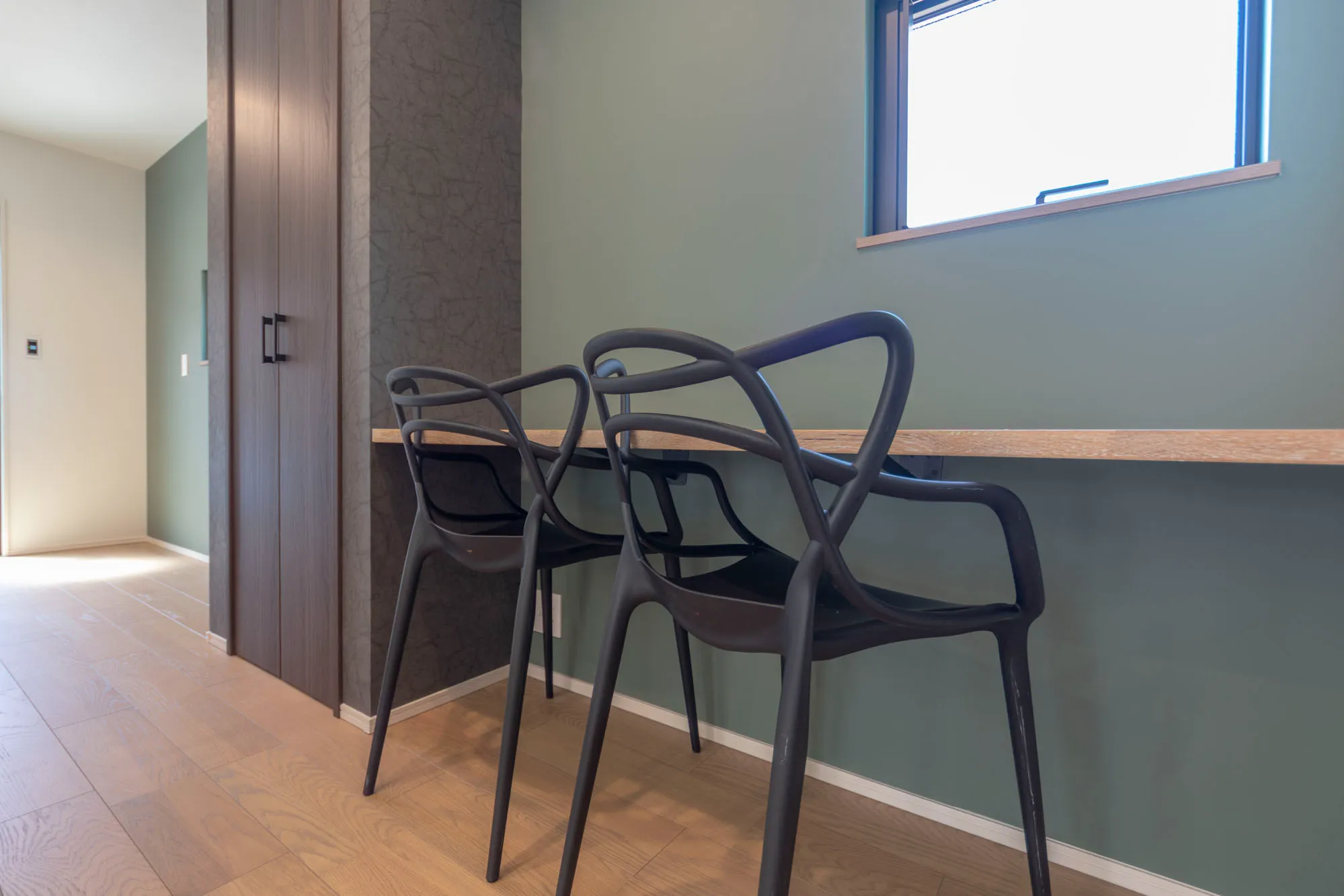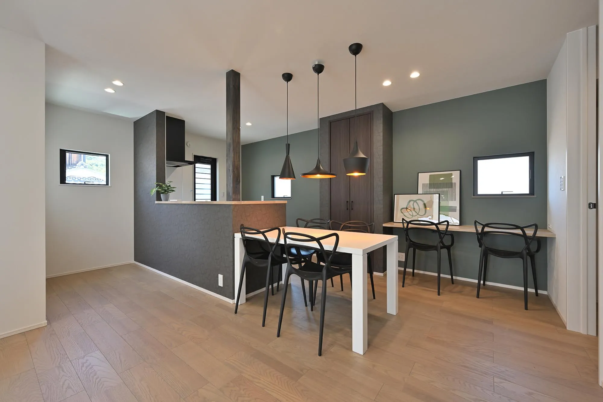 ダイニングとキッチンの傍にはスタディーテーブルを設置。お子様の宿題を見届けながら家事ができるから安心