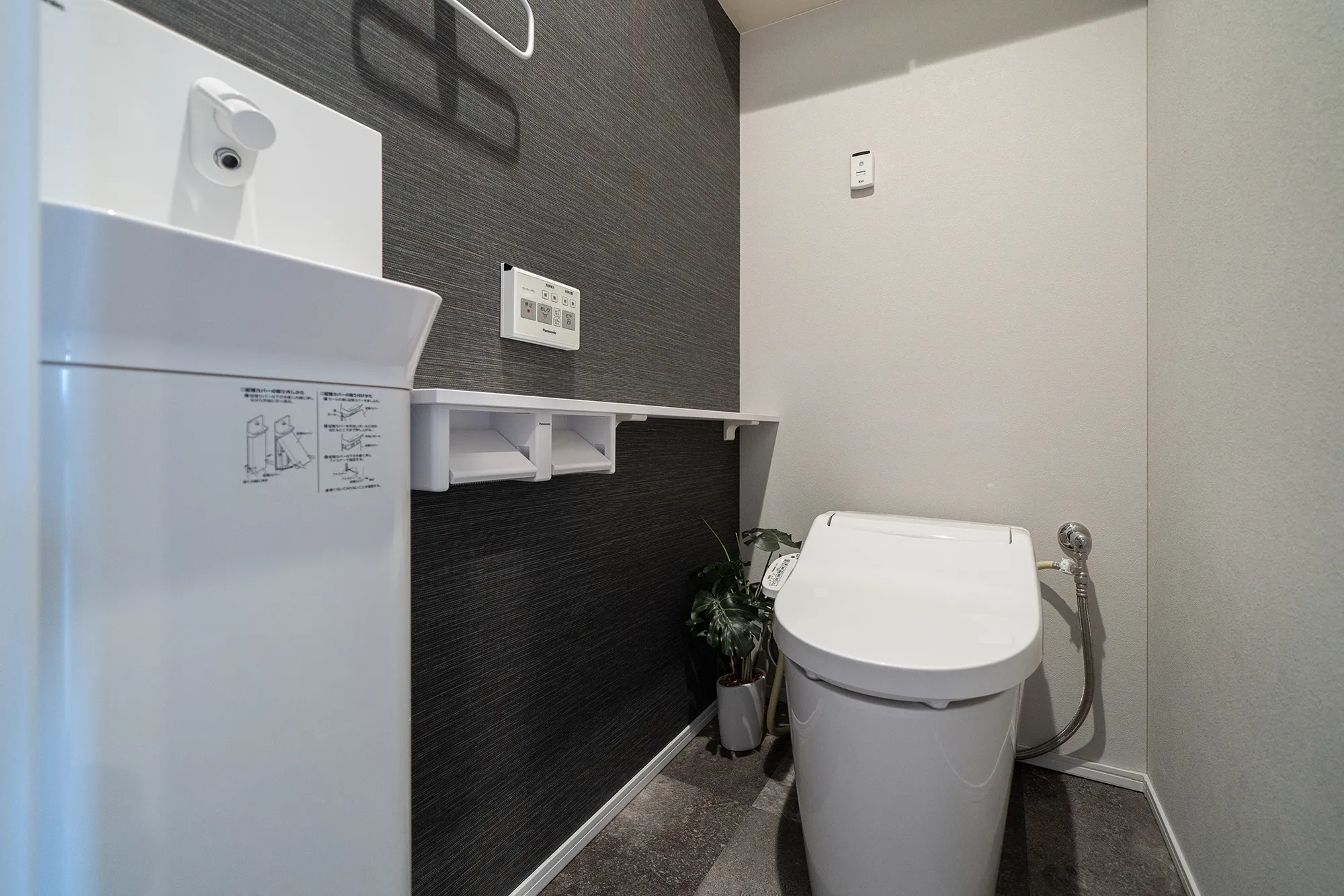 タンクレストイレにリフォーム。上部の収納には扉を付けた