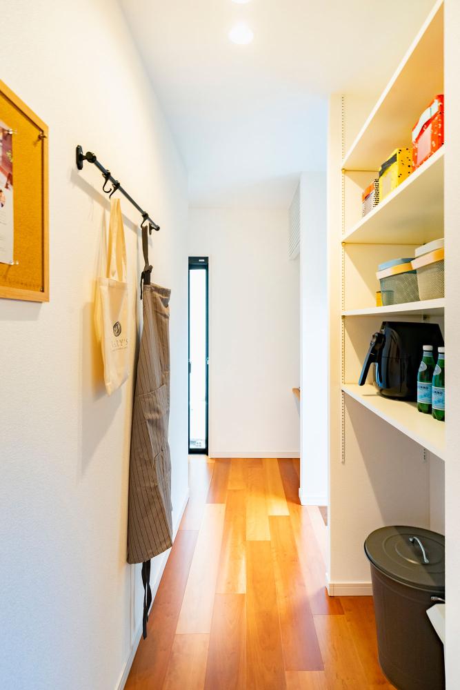 窓際にあるリビングの奥から和室へ抜ける隠し通路は、小さな縁側を感じる何故か懐かしさを感じる空間。この少しの空間が和室とリビングに広がりを持たせる