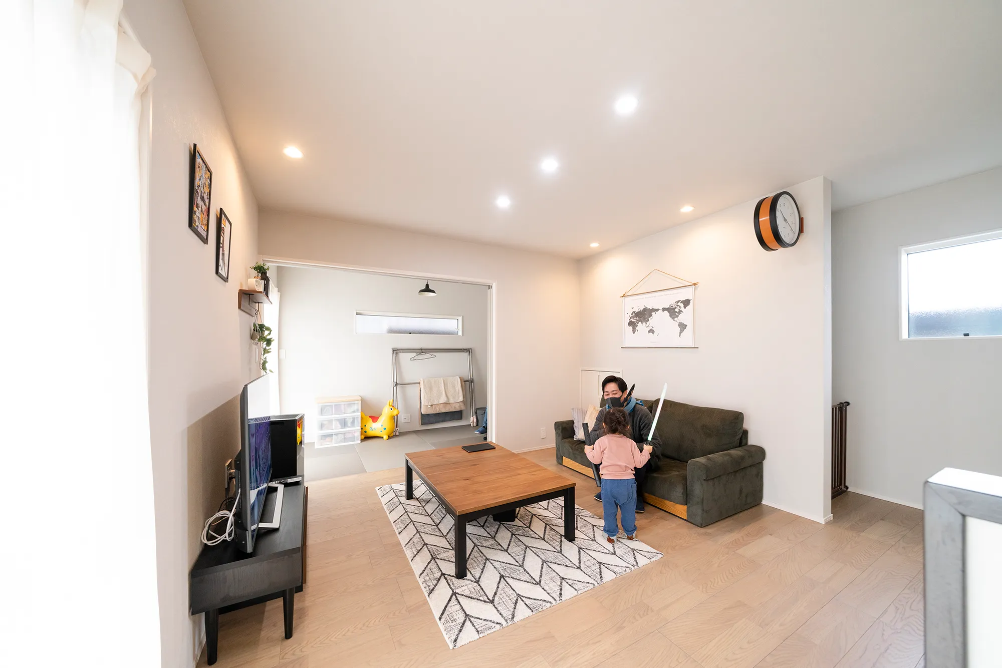 LDKと和室の掃き出し窓には電動シャッターを設置。防犯面もだが「思った以上に使い勝手がよく気に入っている」とTさん。冬の寒い時にも窓を開けずにシャッターを閉めることができるのはポイントが高い様です