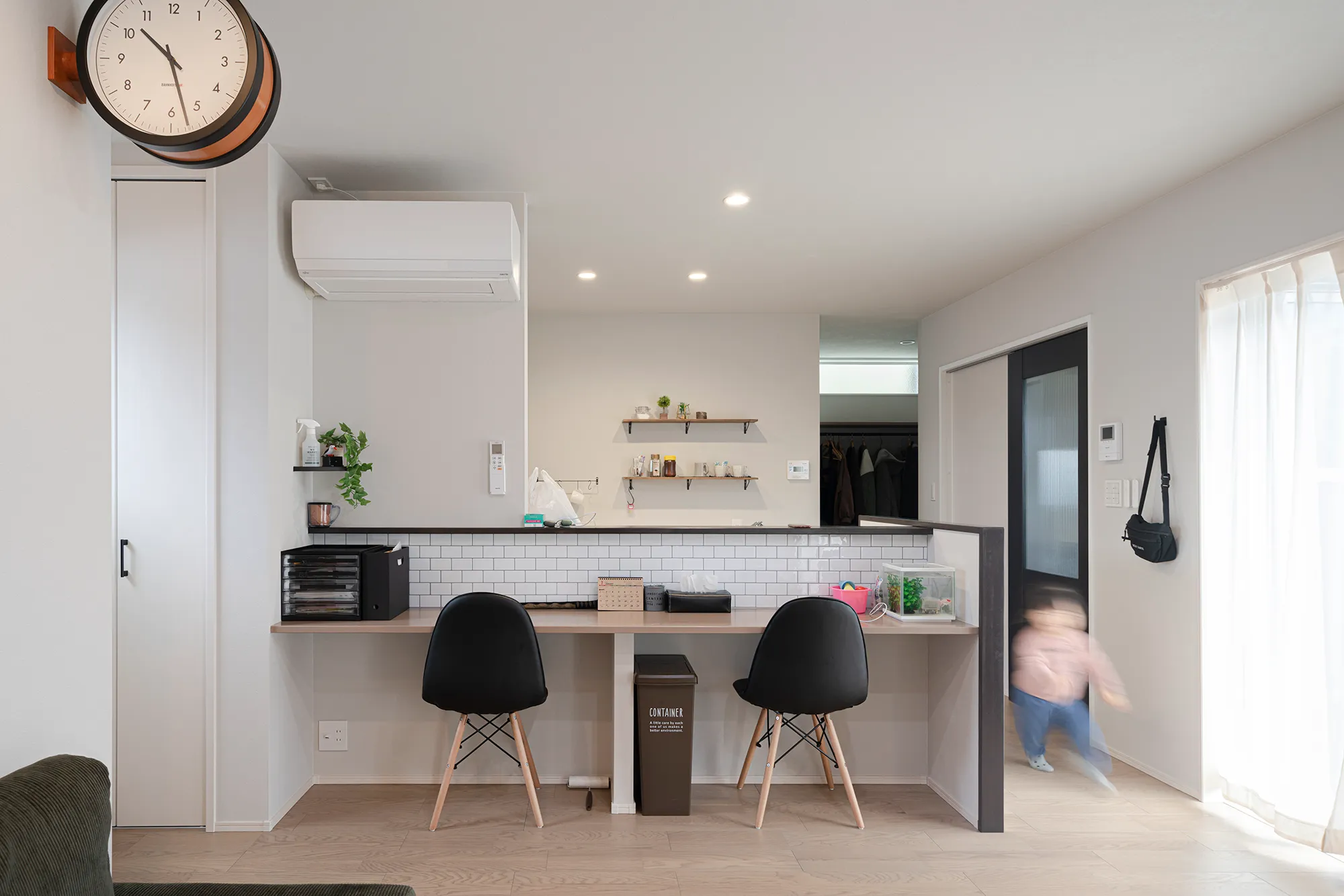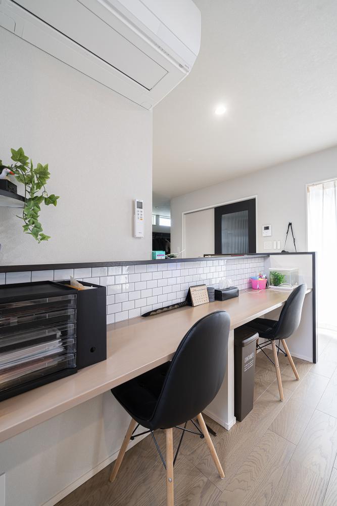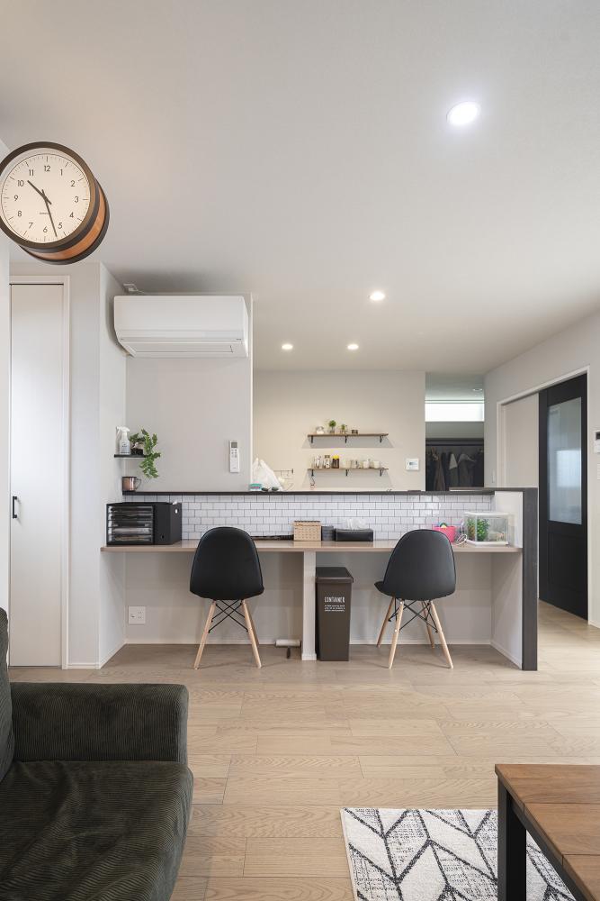 キッチンカウンターはちょっとした書き物やテレワークにも使える