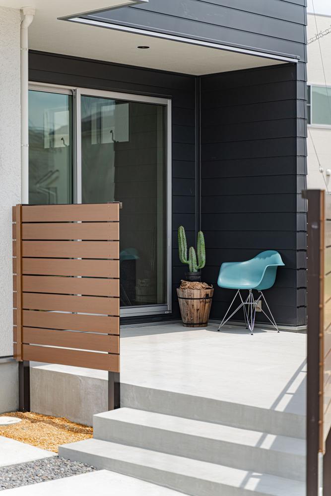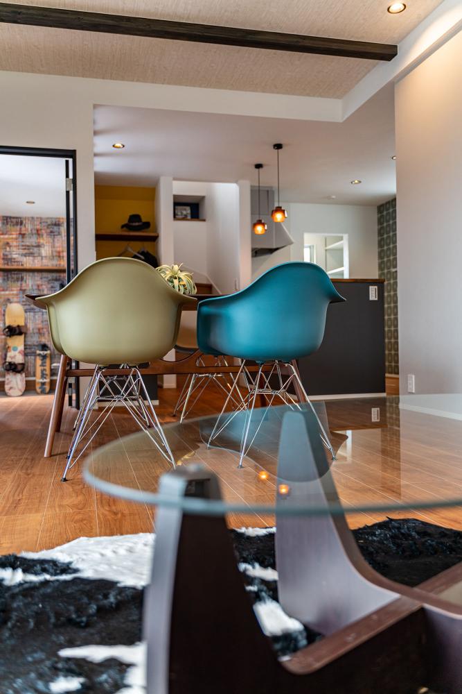 ップサイディングの外壁、縁取りのある窓、伸びやかな大屋根など、カリフォルニアの雰囲気を取り入れながらも、無駄な要素や色を抑え、ミッドセンチュリーを意識した直線的でモノトーンなデザインにまとめている。外観・内観ともに、シンプルモダンな佇まいに木の質感が映える、落ち着いたスタイルだ。