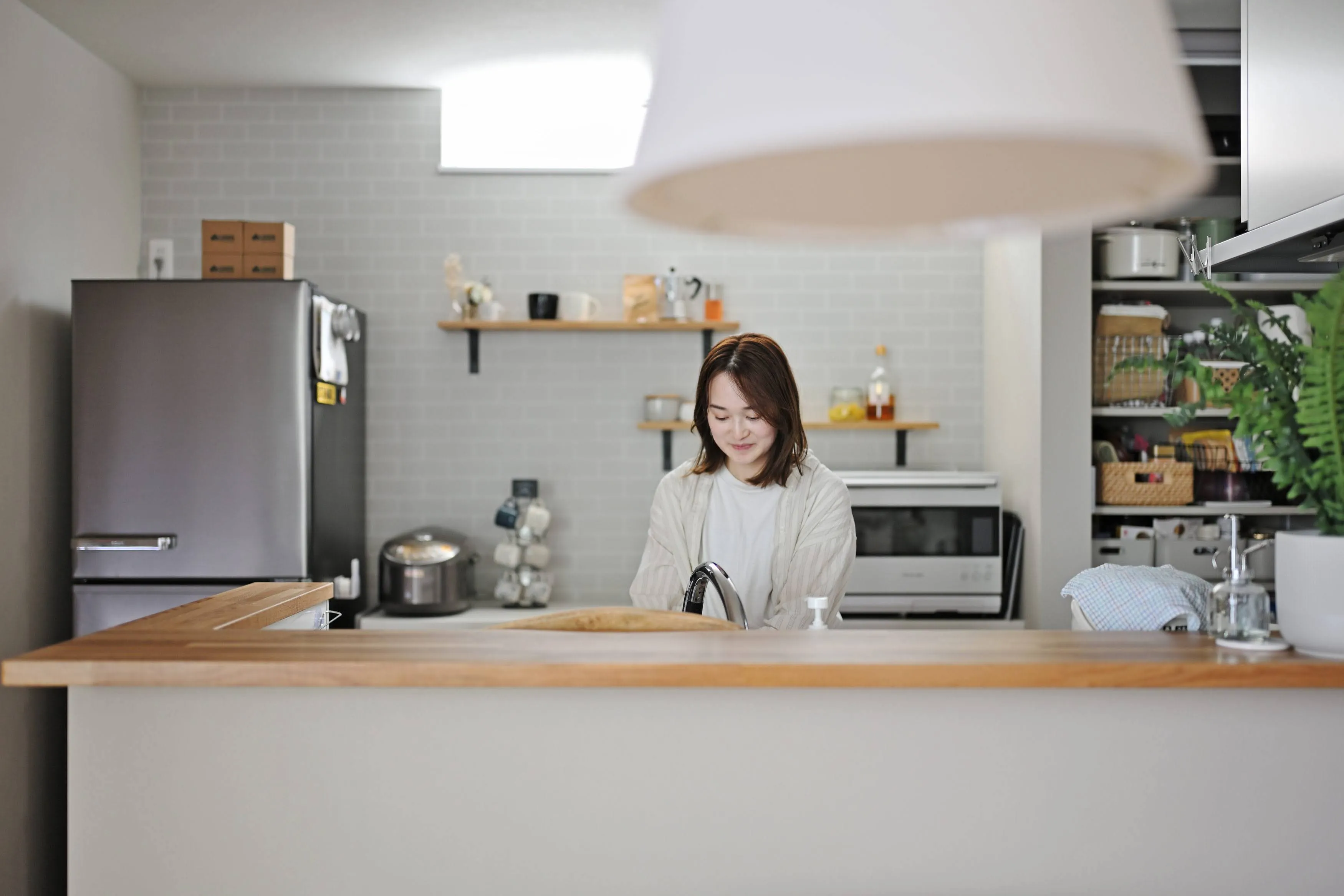 使い勝手の良い動線と、 眺めていたくなるデザイン。 両方叶えたキッチンで、暮らしに彩りを。
