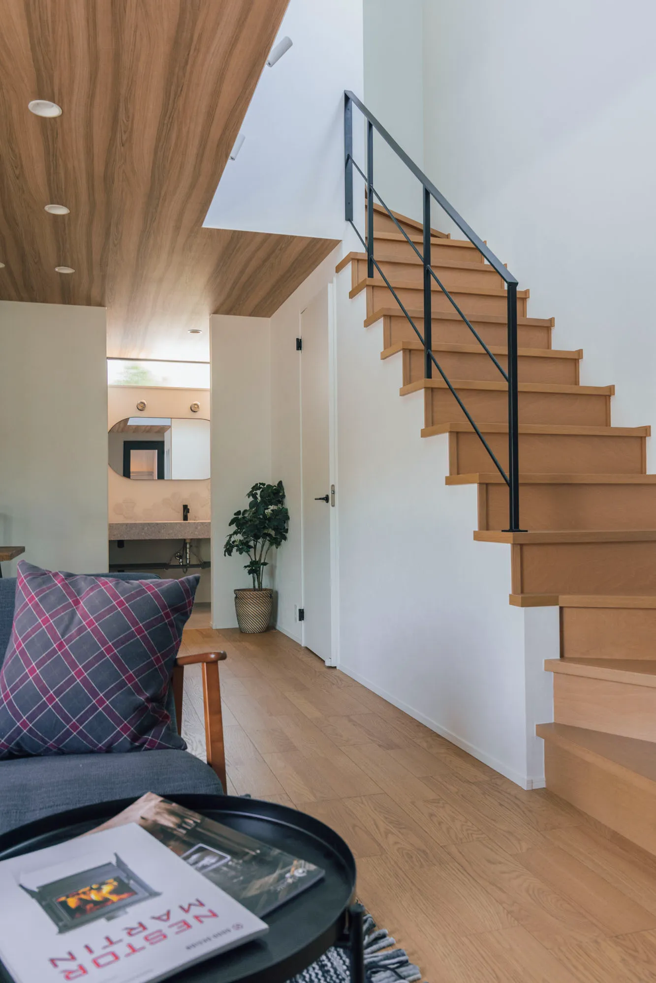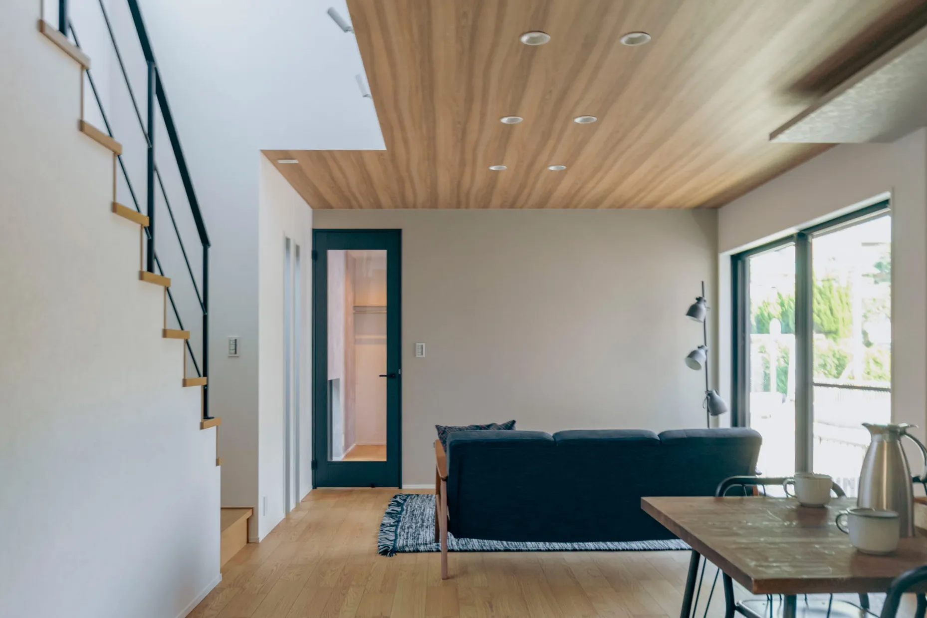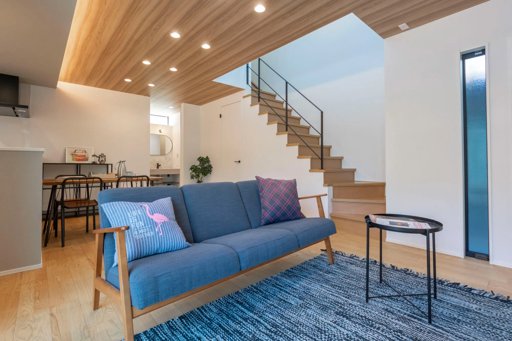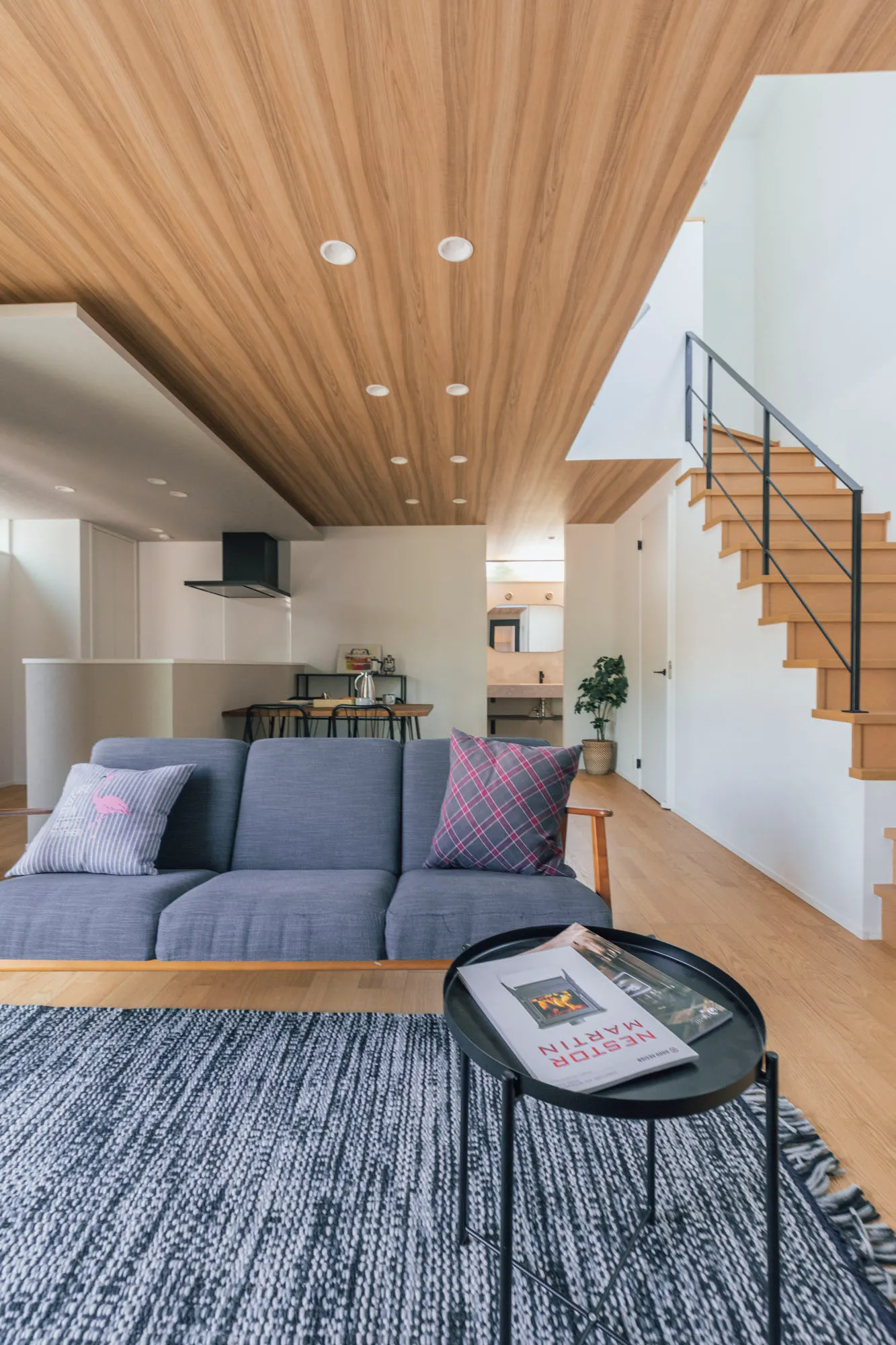 視界を広げてくれるLDK天井も木目クロスと階段の吹き抜けは圧巻です。
