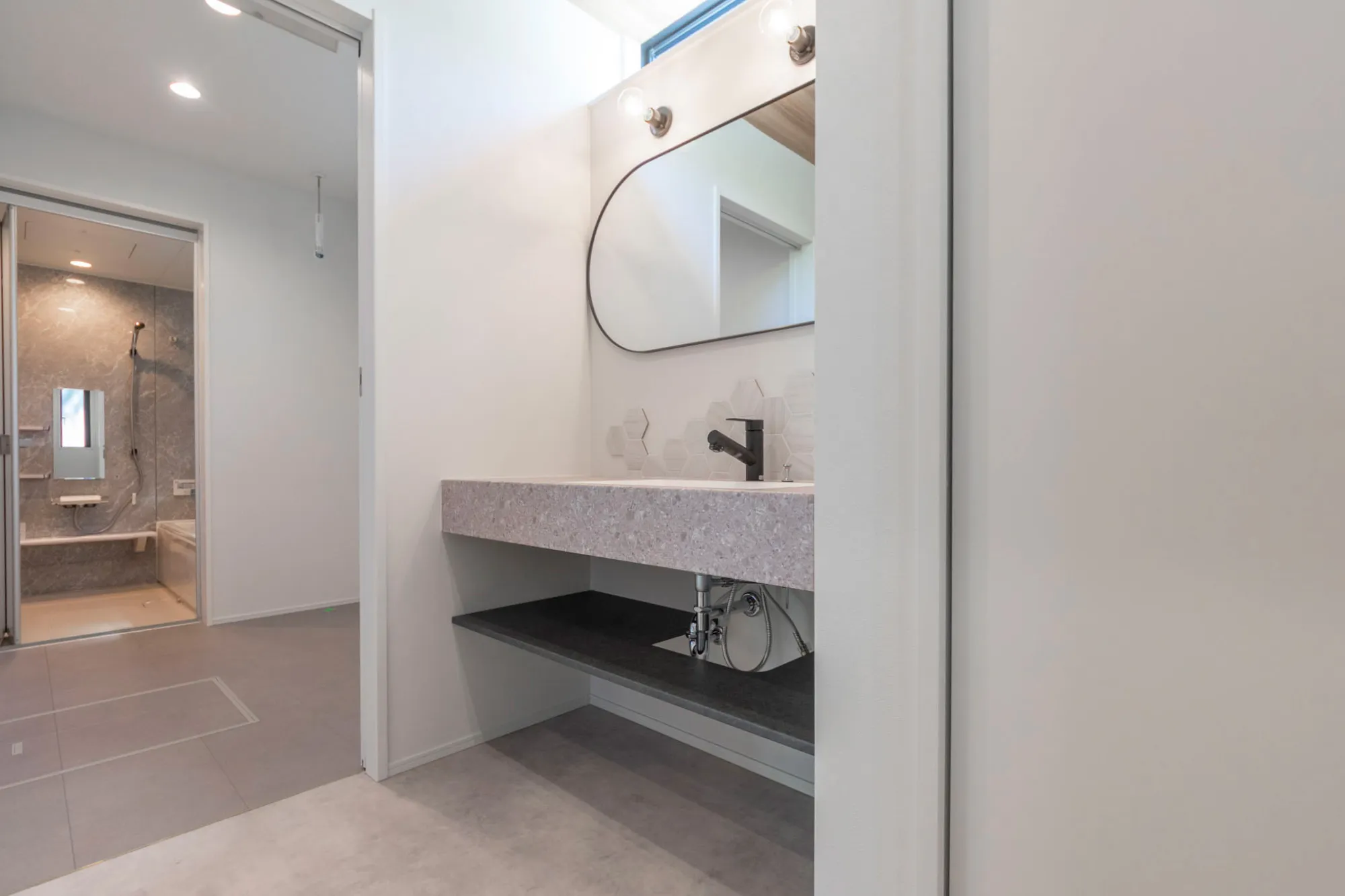 ダークトーンでカッコよくまとめた色に木目を入れ、調和した心地よい空間を実現いたしました。